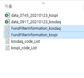 이렇게 해서 일단은 하나하나 코스피와 코스닥에 대해서 한번 작업을 해 보기는 보았습니다. 이렇게 하는 것으로 일단은 리스트를 확보하는 데는 성공하였습니다.
