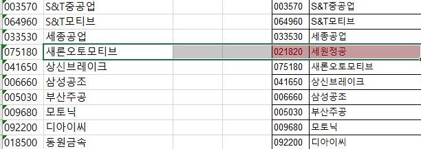 실제로 이런 간극을 어떻게 설명해야 할지 처음에는 몰랐습니다. 그래서 일단은 엑셀의 고유값을 비교해서 표시해 주는 기능을 통해서 한번 종목부터 특정해 보고자 했습니다.