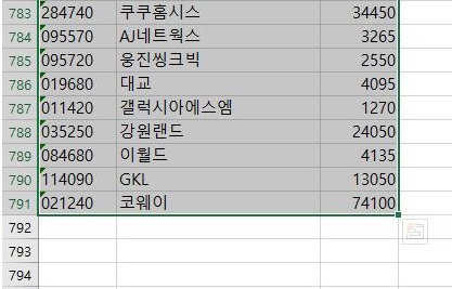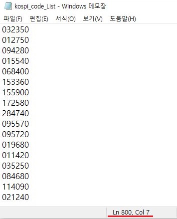 이렇게 해서 일단은 하나하나 코스피와 코스닥에 대해서 한번 작업을 해 보기는 보았습니다. 이렇게 하는 것으로 일단은 리스트를 확보하는 데는 성공하였습니다.