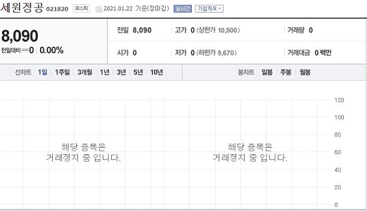 네이버 금융에서 한번 조사를 해본 결과, 위 스크린샷에서 볼 수 있는 것처럼, 일단은 위 스크린샷에서 보이는 것처럼 거래정지 종목이라서 나오지 않은 것도 있으나.............