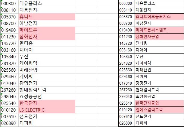 일단 종목명에 대해서는 위 스크린샷처럼 다른 것이 나오기는 하는데, 영어를 한글로 써 놓은 것 처럼 사소한 변형때문에 나온 것도 있으며........