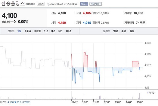 그러나 신송홀딩스와 같은 종목들에서 무언가의 예외적인 것이 발생하는 것을 확인할 수 있기는 있었습니다. 그게 무엇인고 하니............