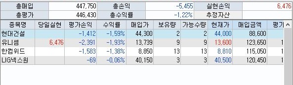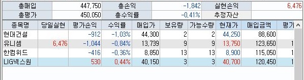 다만 특이한 것이라면 유니셈의 주식을 당일 사서 매도를 해서 수익을 냈다는 점이 있을 것 입니다. 일단 이렇게 해서 나온 수익도 적은게 아니라는 것이 함정은 함정입니다. 아무튼 이래저래 시작은 기분이 좋았지만, 그래도 장기적으로 얼마나 수익이 나올지 두고봐야 합니다.