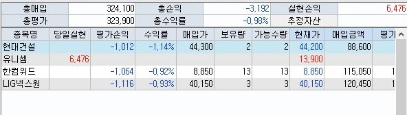결국 마지막까지 어떻게 해서 추가 매도는 일어나지 않았습니다. 그냥 이대로 총알을 장전해 놓았다가 다음 시험운전에서 좋은 결과가 있기를 바랄 수 밖에 없다는 생각이 듭니다.