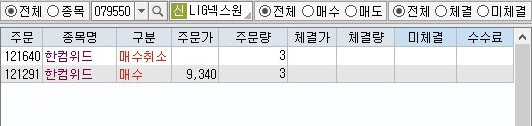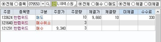 그리고 나서 어느 사이에 이미 매수가 되었는 한컴위드의 주식에 대해서 매도가 일어난 것을 확인할 수 있기는 있었습니다.