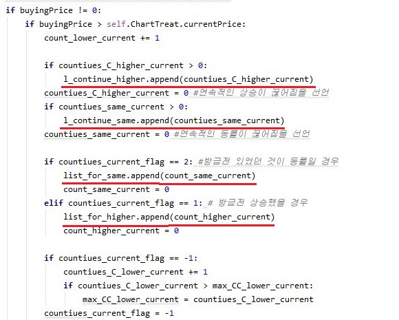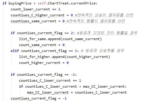 그리고 나서 상승한 경우 - 제가 제일 바라고 또 바라는 상황에서 나오는 것인데, 이 경우에 있어서는 일단 위 스크린샷에서 볼 수 있는 것처럼, 코드를 설계해 주도록 합니다.