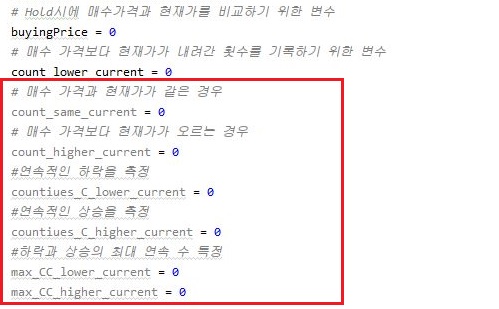 일단 동률일 경우 - 매수가격에서 전혀 변하지 않을 경우 까지 고려하게 될 경우에는 위 스크린샷에서 볼 수 있는 것처럼, 일단 새로운 변수를 추가해 주도록 합니다.
