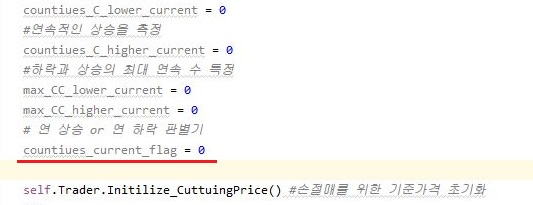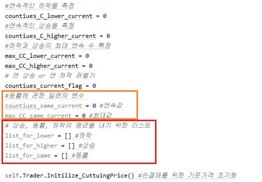 그래서 일단 완성이 된 코드입니다. 이 코드들은 위 스크린샷에서 볼 수 있는 것처럼, 일단은 먼저 매수가격보다 현재값이 떨어진 경우일 때 코드입니다.