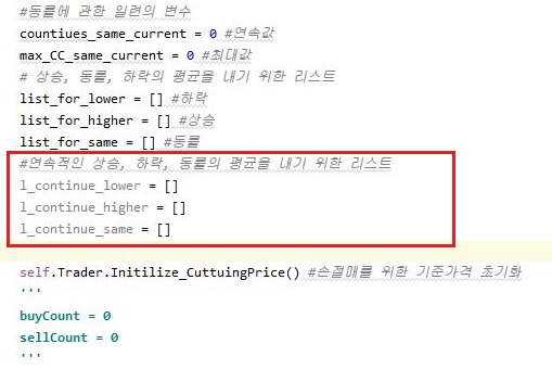일단 동률일 경우 - 매수가격에서 전혀 변하지 않을 경우 까지 고려하게 될 경우에는 위 스크린샷에서 볼 수 있는 것처럼, 일단 새로운 변수를 추가해 주도록 합니다.