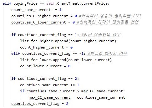 그리고 나서 상승한 경우 - 제가 제일 바라고 또 바라는 상황에서 나오는 것인데, 이 경우에 있어서는 일단 위 스크린샷에서 볼 수 있는 것처럼, 코드를 설계해 주도록 합니다.