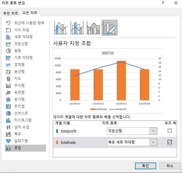 그래서 해당하는 데이터의 종류를 선택한 다음에 계열차트 종류 변경이라는 메뉴를 마우스 우클릭으로 띄우고 나서 선택해 보도록 합니다.