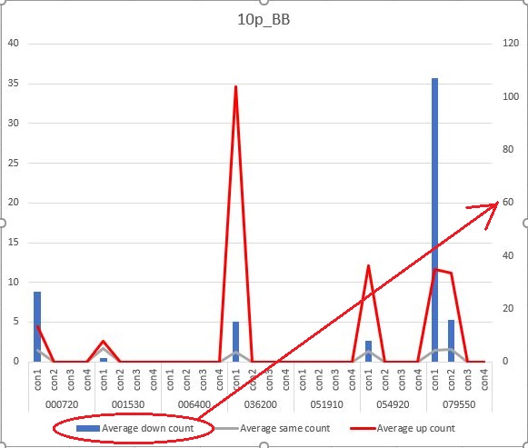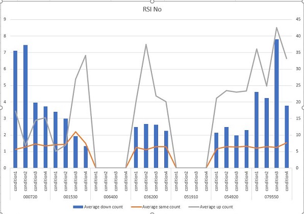 그리고 나서 최대로 나온 갯수를 한 종목에서 비교해 보았는데, 이렇게 조건별로 무언가 특별한 조건이 나오는 것 같지는 않아 보이는 상황입니다.