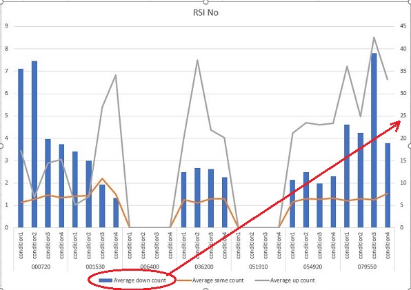 이러하다 보니, 그냥 조건 하나를 두고서 위 스클니샷처럼 나오는 것을 볼 수 있는데, 이번에도 모든 조건에 걸쳐서 역시나 매수 이후에 현재가가 하락하는 경우가 너무 많이 나옵니다.