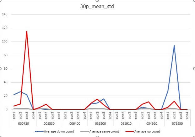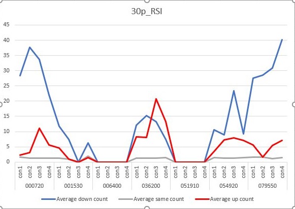 그리고 나서 이번에는 30period의 결과를 한번 보고자 했습니다. 일단 여기서는 보조축이 없어서 어떻게 비교가 될 정도로 무언가..... 매수 이후에 내려간 경우가 적어 진 듯 합니다.