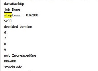 일단 로그상으로는 제대로 손절매인것을 확인할 수 있었습니다. 이렇게 해서 제 의도대로 일이 풀리기는 풀린 것을 확인할 수 있기는 합니다.