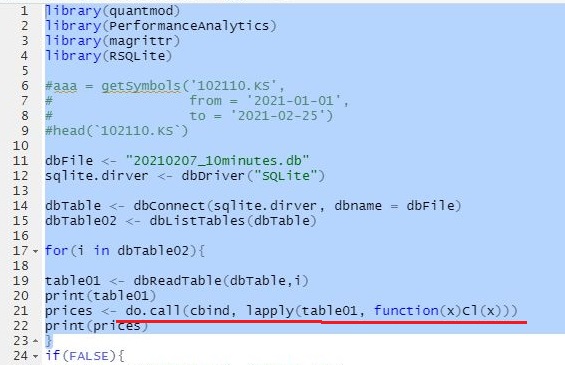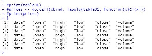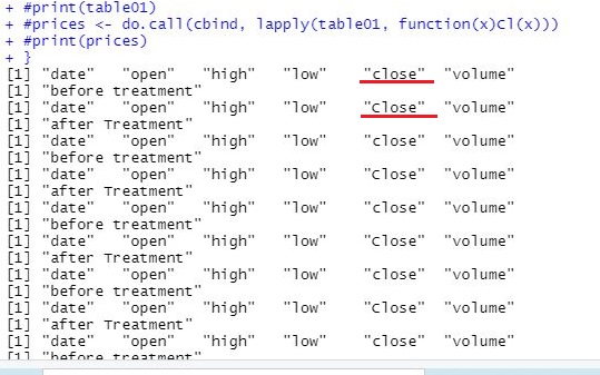 그리고 나서 일단 알아보니, 다음으로 close만 추출한 코드에 대해서 이야기를 해 보자면, 우선 for loop 대신 더 간단하게 적용할 수 있는 lapply함수가 적용이 되었고, 그 다음에는 do.call이라는 함수가 적용이 되는데, 더 자세히는 들어가고 싶기는 하지만, 시간대비 효율이 안 나와서 일단 넘어는 갑니다.