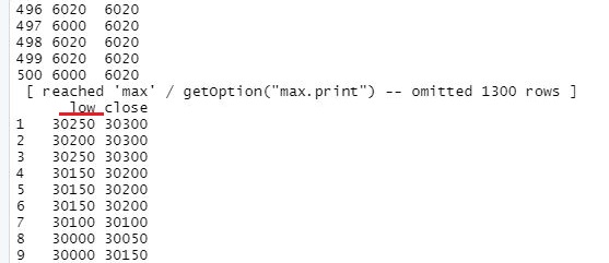 이렇게 해서 close만 추출해 낸 것은 좋은데 어찌된 것인지 low라고 저가까지 같이 딸려온 상황이 나왔습니다. 이래서야 상황이 좋지는 않아 보입니다.