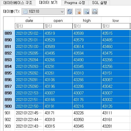 일단 새로 다운로드 받은 Tiger 200의 길이가 더 길어서 생기는 문제이기 때문에 일단은 900 열을 그냥 날려 버리는 선택을 할 수 밖에 없었습니다.