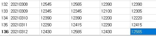 이렇게 해서 일단 어떻게 제가 원하는 방식대로 나오기는 나오는 듯 한데, 마지막으로 가장 최신의 종가를 제대로 찝어오는지를 보도록 합니다.