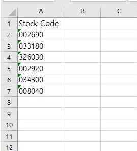 먼저 기존에 있던 데이터의 순서를 오름차순으로 바꾸어서 한번 작업을 해 보고도록 합니다. 이렇게 해서 종목코드를 고르는 작업에 들어갑니다.