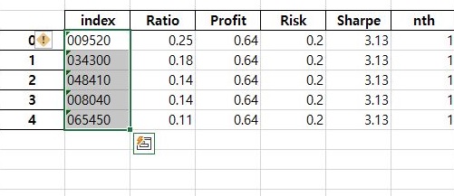 이렇게 해서 결과가 나오기는 나왔습니다. 일단 목록에서 종목들이 걸러지기는 했으니, 어찌되었건 간에 다음으로 얘네들만 모아서 한번 해 봅니다.