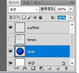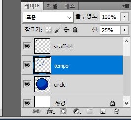 그리고 나서 이제 tempo라는 이 레이어를 안 보이도록 초지를 취해 주도록 합니다. 이렇게 하는 것으로 일단 다음 작업을 할 수 있을지 보도록 합니다.