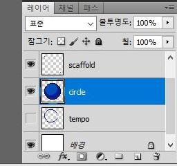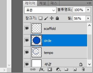 그리고 나서 이번에는 새로운 원형을 만들고 나서, 새로운 원을 그려서 더 밝은 색으로 어떻게 위치시킨 다음에, 이번에는 tempo 레이어를 투명하게 만들어 줍니다.