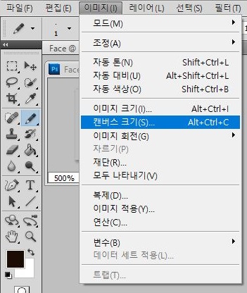 먼저 이미지에 있는 캔버스 크기라는 메뉴를 선택해 주도록 합니다. 이 메뉴를 선택하는 것으로 다음으로 해야 할 것은...................