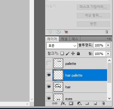 일단 팔레트 역할을 할 레이어를 하나 더 만들어 주었습니다. 이렇게 하는 것이 좋기는 좋은데, 문제는 얘네를 가지고서 어떻게 색상을 지정할 것이냐 하는 문제가 남아 있습니다. 일단 색상에 대해서는 갈색이나 검은색 계통은 도저히 자신이 없어서, 어떻게 해야 할지 모를 상황입니다.