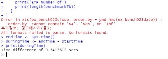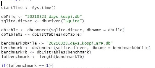 R을 다시금 작동 시키고 나서, 위 스크린샷처럼 먼저 코스피의 내용에 대해서 ETF와 그냥 종목에 대해서 데이터 베이스 파일을 입력하도록 합니다.
