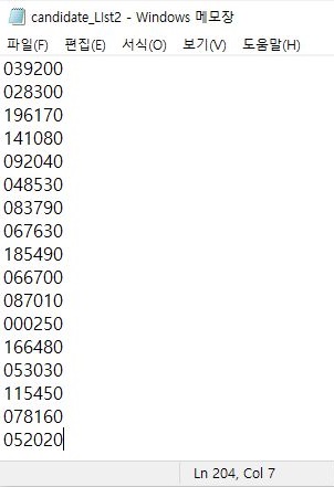 먼저 여기다가 200개가 넘는 종목을 가지고서 한번에 테스트에 들어가 보고자 합니다. 물론 이 과정이 어느정도 시간이 걸리겠지만, 일단 해 봅니다.