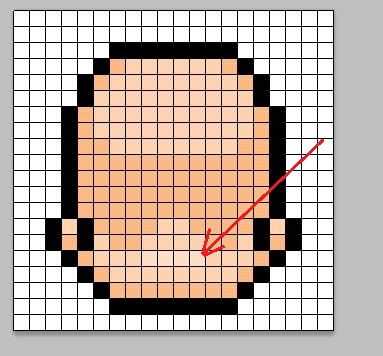 먼저 정수리 부분의 빛을 가장 많이 받는 부분을 그려줄 차례인데, 일단 위 스크린샷에서 볼 수 있는 것처럼, 1픽셀씩 남겨 놓고서 더 밝은 색상을 칠해 주도록 합니다.