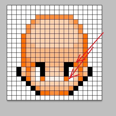 그리고 나서 눈썹과 눈매를 관장한다고 할 수 있는 1픽셀을 양쪽에 하나씩 검은색으로 찍어 주도록 합니다. 이렇게 해서 보니, 어느정도 무언가가 된 듯 합니다.