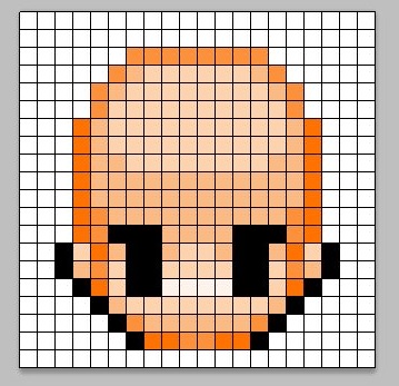 그리고 나서 눈썹과 눈매를 관장한다고 할 수 있는 1픽셀을 양쪽에 하나씩 검은색으로 찍어 주도록 합니다. 이렇게 해서 보니, 어느정도 무언가가 된 듯 합니다.