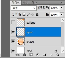 이 눈을 그리는 작업을 하기 앞서서 일단 위 스크린샷처럼 눈이라는 빈 레이어를 하나 만들어 주고 나서 시작을 해 보도록합니다.