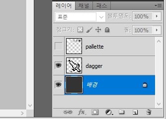 그리고 나서 단검 옆에 한 구석에 팔레트를 그려 놓도록 합니다. 이렇게 하는 이유는 이제부터 이걸 기준으로 해서 일단은 색상을 바꾸는 작업을 하는데 필요하기 때문입니다.