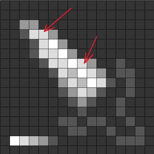 그리고 손잡이에서 더 밝은 부분을 연한 색상의 픽셀로 칠해 주도록 합니다. 이렇게 해서 일단 첫 단계를 들어갈 수 있기는 있게 되었습니다.