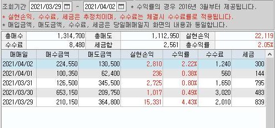 그리고 나서 일단 어느정도 이익을 4월 2일 하루에도 얻었는 것을 확인활 수 있었습니다. 다만, 이렇게 한다고 해서 총 손익에서 나오는 이 손해를 만회할 정도는 아직 아닌 것 같습니다.