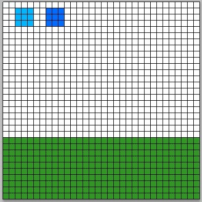먼저 대지를 일단 풀밭이라고 대충 짐작해서, 위 스크린샷에서 볼 수 있는 것처럼, 일단은 초록색 풀밭으로 해 주도록 하고, 다음으로 해야 하는 것으로는 일단 극명하게 다른 두가지 색상으로 하늘을 칠하는 것 입니다.