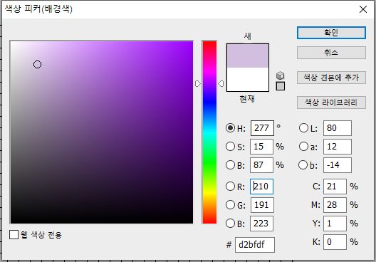 그리고 두번재 색상을 역시 픽커에서 선택해 주도록 합니다. 이렇게 해서 색상을 정하는데 성공했으면, 팔레트를 어떻게 만드느냔 하면...........