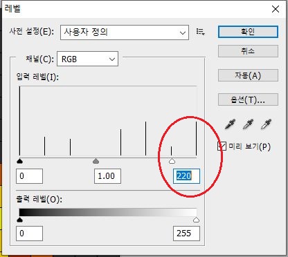 일단 원래는 255로 되어 있는 상황에서 220으로 바꾸어 보도록 합니다. 일단 이렇게 해서 어떻게 작업을 하기는 했습니다만...............