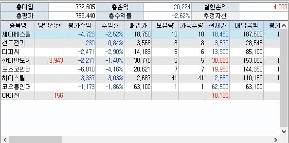 그래서 그렇게 시원찮은 하루가 되어서 일단 4천원의 수익을 올리는데 성공하기는 했습니다. 다만, 이렇게 소자본을 투자해서 올린 이익이 모의에서나마 나오는 것이 위안이라는 생각이 듭니다.