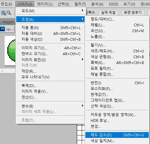 일단 이미지를 복제한 다음에, 복제된 이미지에다가 위 스크린샷처럼 이미지 항목안에 있는 채도감소를 가지고 오도록 합니다.