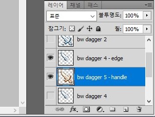 이렇게 칼날과 손잡이 부분으로 나누어 준 것은 좋은데, 이 손잡이 부분의 색상이 항상 마음에 들 수는 없기는 없습니다. 그래서 다음으로 해야 할 것으로는 역시나, 이런 상황에서 적용할 수 있는 테크닉에 대해서 한번 실습에 들어가고, 그 내용을 올려 봐야 겠습니다.
