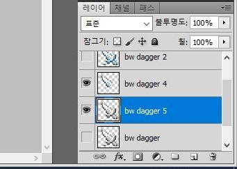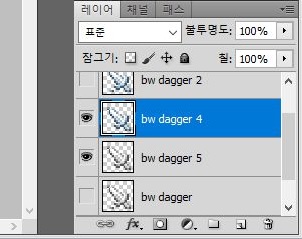 다시한번 이 흑백으로 칠한 단도를 불러 오도록 합니다. 물론 당연하다면 당연하게도 복제하는 것도 잊지 않았고, 팔레트는 더 이상 필요가 없어서 제거했습니다.