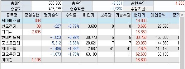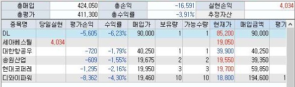 | 두번째 정산 - 2021년 4월 9일 금요일 모의투자 결과 (0) | 2021.04.10 |