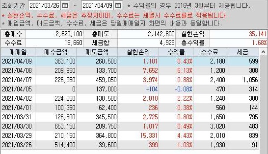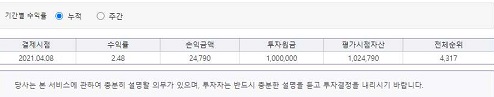 그리고 수수하게 어떻게 보면 천원대의 수익을 냈지만, 이게 중요한 것이 아니라 지금까지 얼마나 벌었으며, 얼마나 수익이 나왔는지에 대해서 한번 이야기를 해 보아야 할 시간이 되기는 되었습니다.