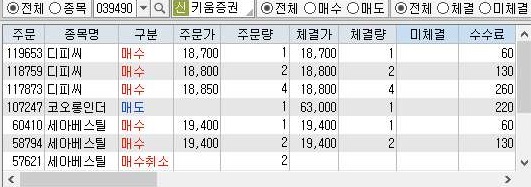 지금 올리는 포스팅은 다른 것이 아니라 금요일에 있었던 알고리즘 트레이더의 적용과 더불어서 지금까지 얼마나 벌었고, 상황이 어느정도 인지 정리하는 단계로 왔습니다. 일단 이 작업을 하기 위해서는 일단 하루종일 기다린 후에, 한번 키움증권 홈페이지까지 들어가서 계산된 자료를 가지고 왔습니다.