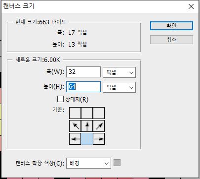 먼저 이 작업을 하기 앞서서, 기존에 있던 슬라임을 그려 놓았는 캔버스에다가 캔버스 크기를 더 늘리는 작업을 해야 합니다. 이렇게 해서 보면, 어떻게 처음에 자그만한 무언가를 그리기 위해서는 일단 그 크기를 작게 만들어 놓도록 했다가, 필요하면 캔버스의 크기를 그때 그때 늘리는 것이 좋겠다는 생각이 들었습니다.