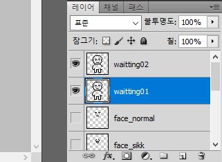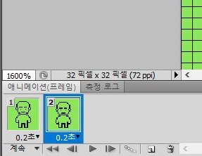 이렇게 해서 일단 2장의 레이어를 만들어 내는데 성공했습니다. 이제 애니메이션 항목을 열어서 필요한 프레임에 필요한 레이어를 매칭 시켜야 합니다.